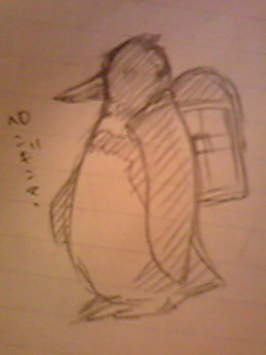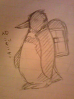 モナカさんがランドセル背負ったペンギンって書いてらしたんで、どんなだろ?ってことで落書き。